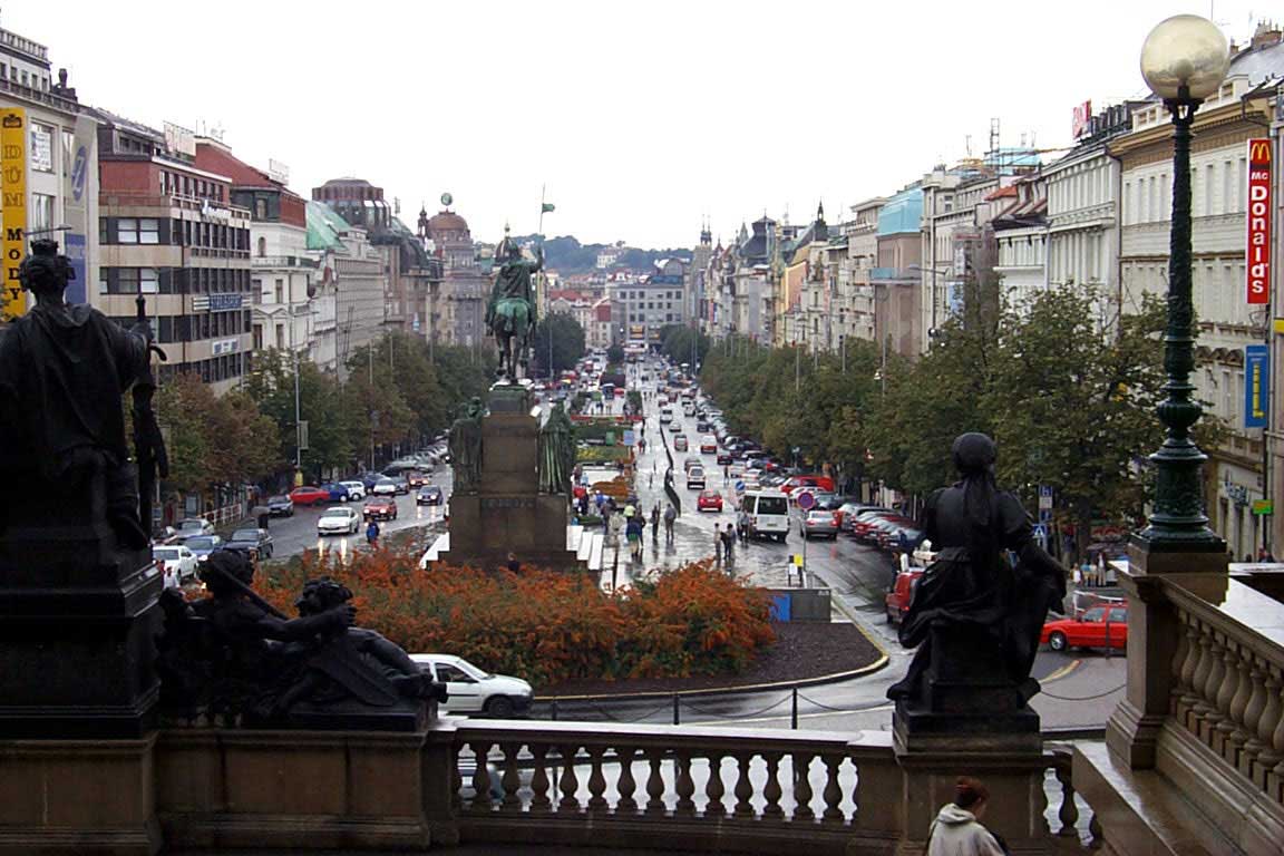 Plaza Wenceslao (Vaclavske Namesti), vista desde la escalinata del Museo Nacional.