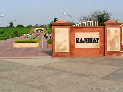 Entrada del Rajghat, donde se incineró a Gandhi, lugar de reunión y tributo para miles de hindues