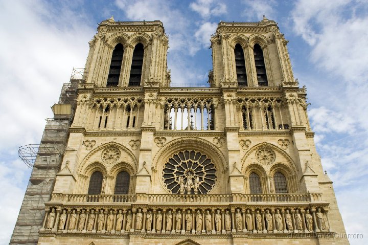 | Frente y porticos oeste de Notre Dame, en la parte inferior la Galería de los Reyes donde están representados 28 reyes de Judea |