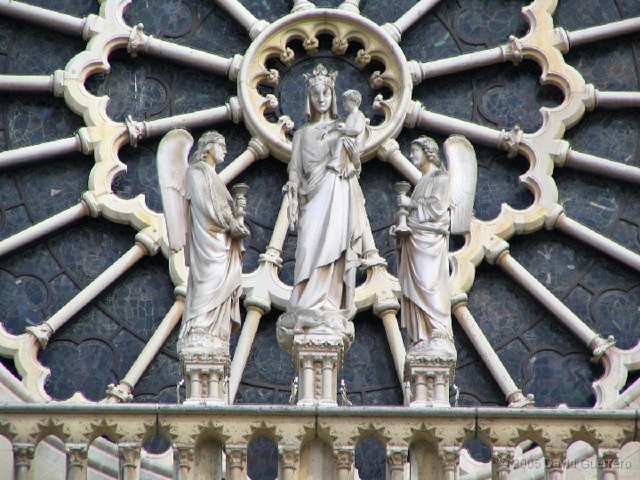 | Detalle del rosetón oeste con la imagen de la Virgen |