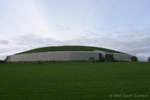 Vista completa del túmulo principal de Newgrange. En las inmediaciones, multitud de túmulos similares permanecen aun sin excavar