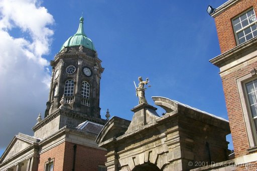 Torre Bedford, junto a la Figura de la Justicia, en la entrada de Cork Hill al Castillo de Dublin