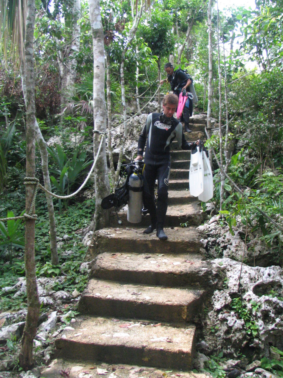 | Lo primero de todo, transportar el pesado equipo a través de la selva hasta la entrada de la cueva |