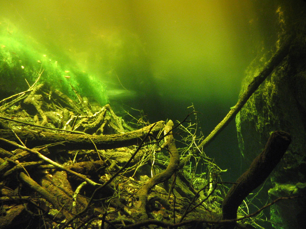 | La coloración ocre-rojiza del agua en esta zona se debe a la presencia de acido tánico, procedente de la descomposción del ramaje que cae desde la selva |